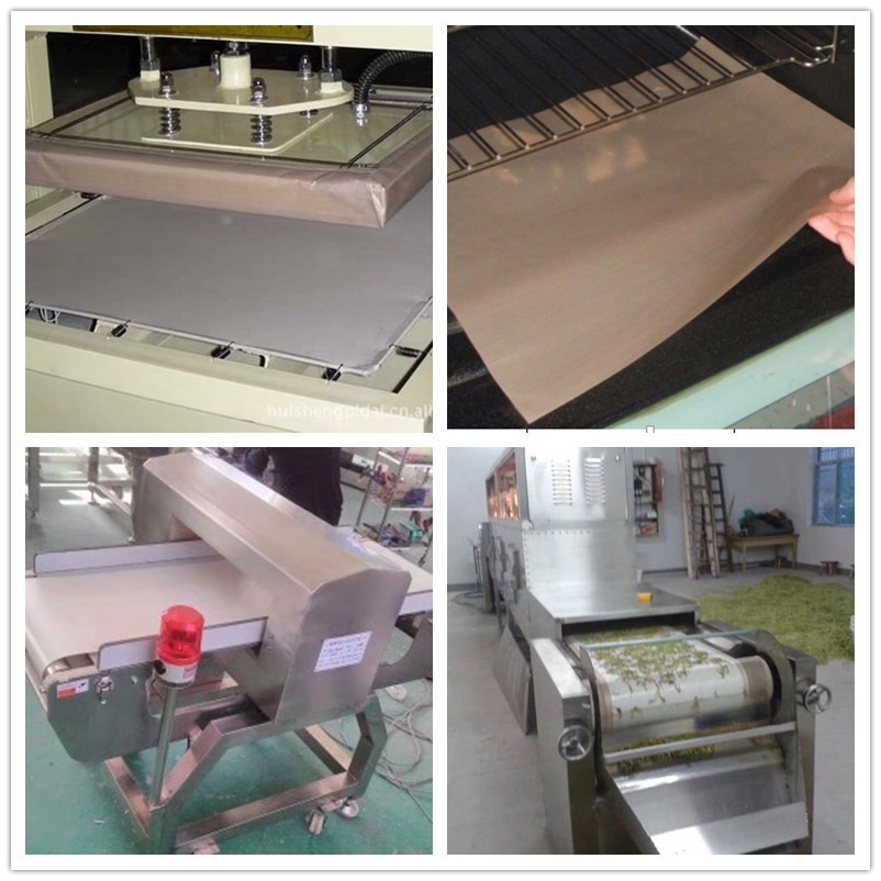 1、抗粘的內襯、墊片、蒙布和輸送帶;根據厚度不同,用于各種烘干機械的輸送帶,粘合帶,封口帶等;